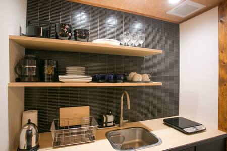 高速インターネット、冷蔵庫、電子レンジ、電気ケトル、食器類、コーヒーメーカー、基本調味料、調理器具、ドライヤー、冷暖房、ウォシュレットトイレ、洗濯乾燥機