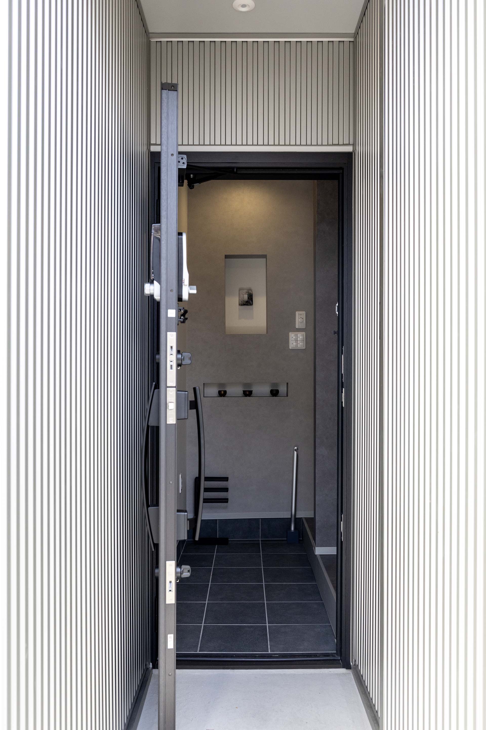 ※玄関出入口外側に屋外防犯カメラが設置しております。